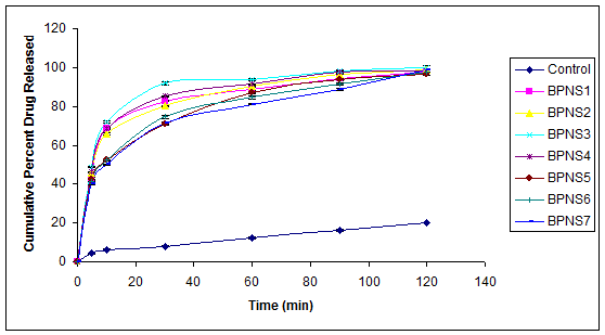 The more the number of niosomes formed from proniosomes in the GI tract upon hydration, the better the dosage form can be speculated. Among various formulations, the formulation with the following code BPNS4 demonstrates good number of niosomes. The results of all above-mentioned physicochemical parameters are represented in table 3 for various proniosomal formulations.