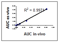 Ex vivo/In vivo Correlation was performed by determining the r2 value from the graph plotted between the AUC of In vivo and ex vivo concentration at different time points [37].