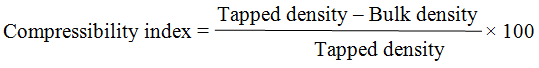 Compressibility index was calculated by determining bulk density and tapped density (Electro lab tap density tester, USP) of pellets using the equation: