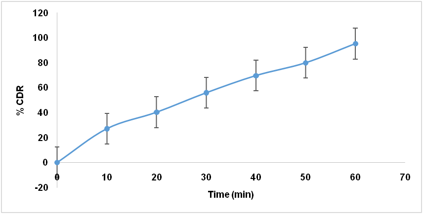 Dissolution study of the marketed formulation was performed in order to compare with formulated pellets to know the drug release behaviour of acarbose pellets. Marketed formulation shows 95 % of drug release within 60 min. The results are shown in (fig. 7).