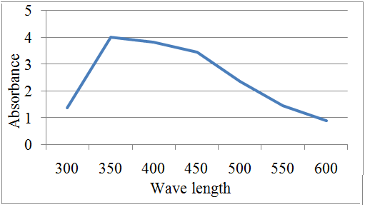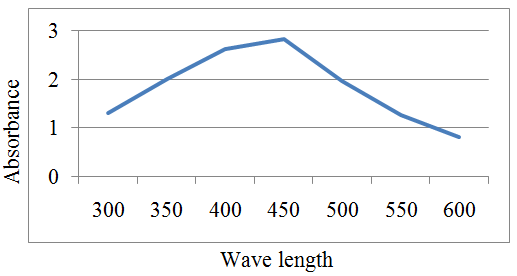 The samples were subjected to UV visible spectra analysis on a Perkin-Elmer (lambda-25) spectrophotometer and the absorption maxima were analyzed at wavelength 300–600 nm. The de-ionized water was kept as blank.