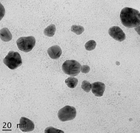 The results of UV-vis spectra confirmed by using transmission electron microscope. TEM was used to view the morphology and size of silver nanoparticles. C. F. of Gliocladium roseum produced spherical-shaped nanoparticles of size 11-19 nm whereas M. E. formed nanoparticles were of 25-38 nm in size and of spherical to subspherical in shape (fig. 3 and 4).
