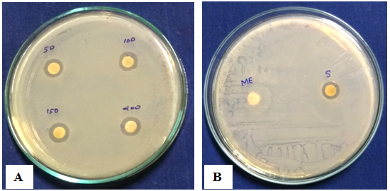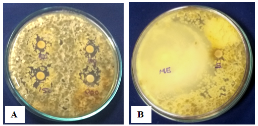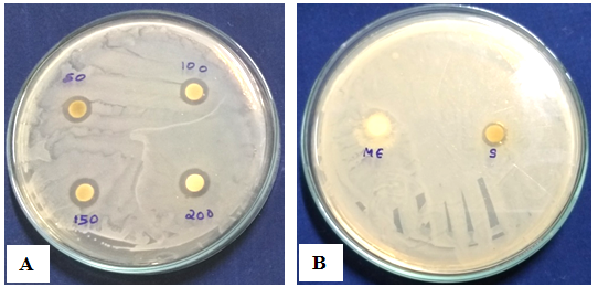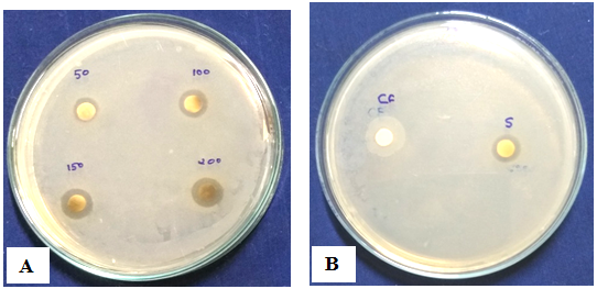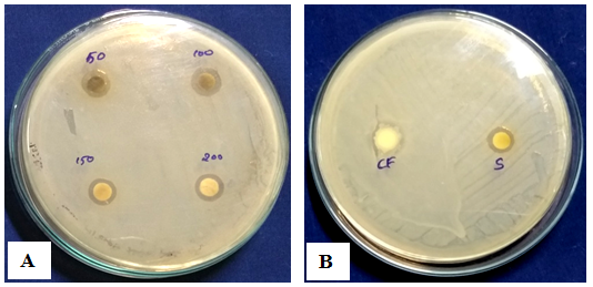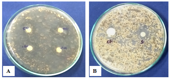 Fig. 9: (A) Gliocladium roseum culture filtrate silver nanoparticles against Salmonella typhi (B) Control