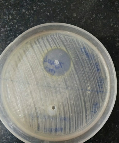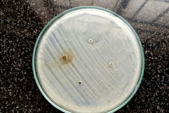 MHA is prepared from dehydrated medium using distilled water or deionised water. It’s heated to dissolve completely, followed by autoclaving at 121 degree C for 15 min. Then pH was checked after each sterilization, which should range between 7.2-7.4. The agar was cooled at 40-50 degree C and poured on a sterile petridish in a uniform depth of 4 mm. Prior to use the petridishes were dried at 30-37 degree C at an incubator till the excess surface moisture was evaporated. Likewise, three petridishes were made, one for each bacterium [8].