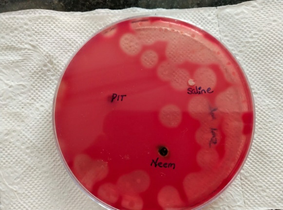 Antimicrobial activity of crude neem extract by agar cup diffusion method.