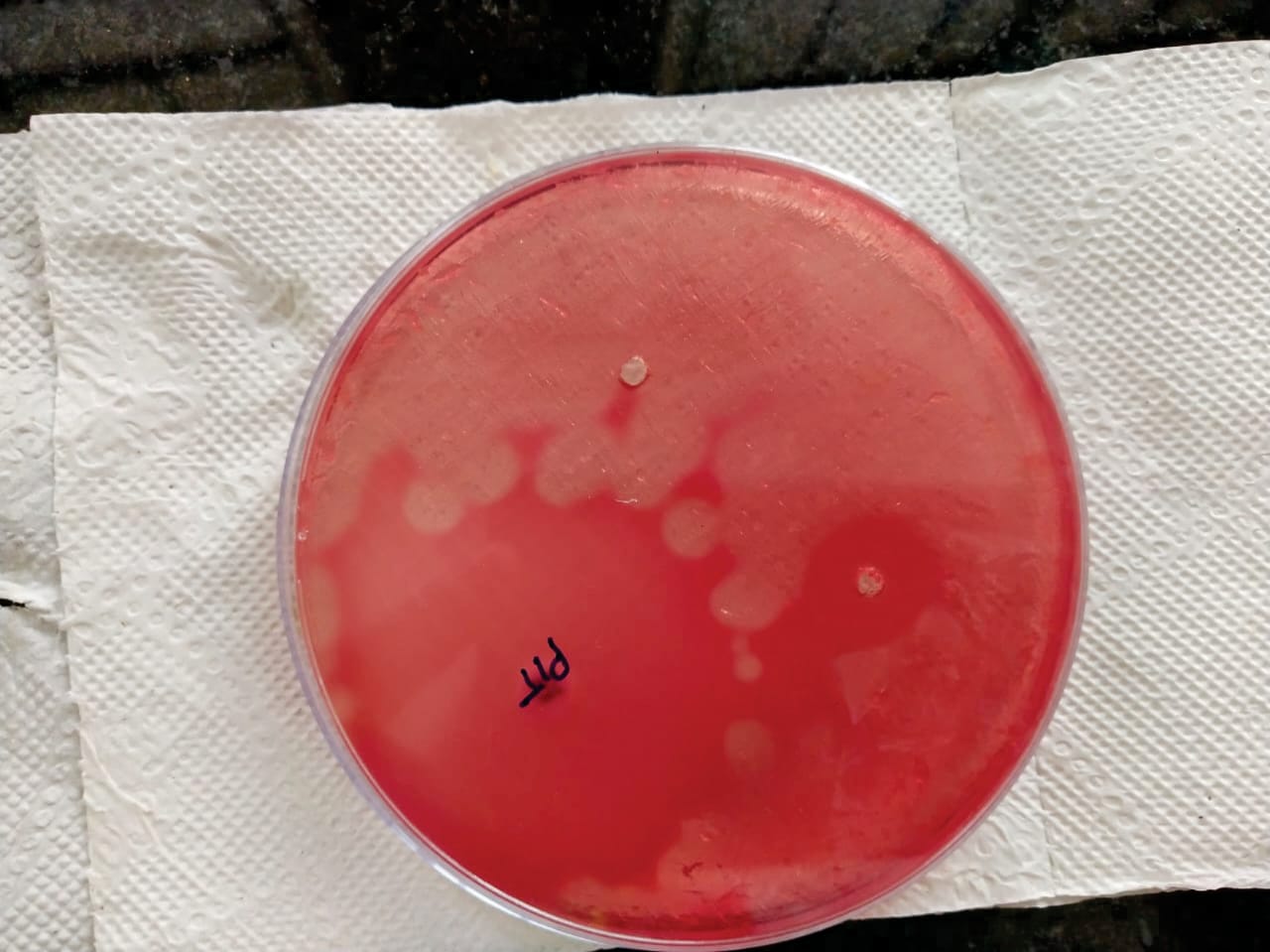 Samples were inoculated in cooked meat medium and incubated anaerobically at 37 °C for 24h in anerobic jar. Samples were streaked on Sulphite polymyxinsulphadiazine SPS agar plates. They were incubated anaerobically and the colonies were gram stained and subcultured on Brain Heart Infusion (BHI)agar plates. This was done until they were free of contaminating bacteria. The pure colonies were streaked on 5% sheep blood agar and egg yolk agar plates. They were incubated anaerobically for 24 hour. Clostridium perfringens colonies were identified by their characteristic double zone of hemolysis around them on blood agar and zone of opalescence around the colonies on egg yolk agar. For further use, they were then preserved at-80 °C as glycerol stock (25% glycerol in BHI broth [7].