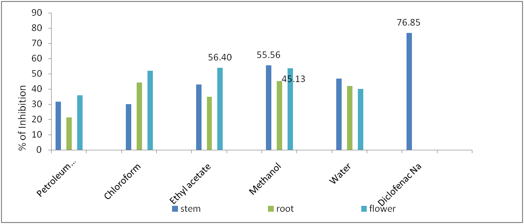 All the results were compared with standard Diclofenac Sodium, which showed 76.85% protection. This activity may be due to the presence of phytochemical constituents present in the sample extract.