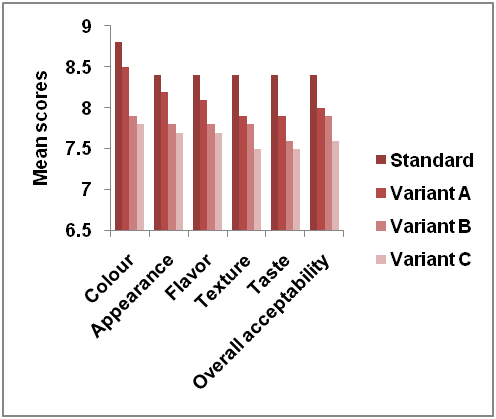 | Variants | Color | Appearance | Flavor | Texture | Taste | Overall acceptability |