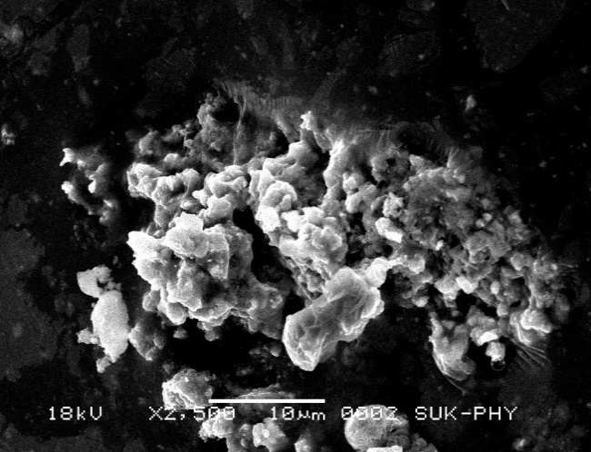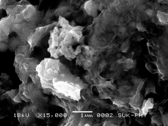 Preliminary phytochemical analysis of MC leaf extract showed positive for glycosides, alkaloids, flavonoids, tannins, phenols, steroids and terpenoids. Silver nanoparticles were synthesised from ethanolic extract of MC leaf using silver nitrate. The colour change from green to brownish-yellow denoted the successful formation of AgNP after 72 h incubation in dark at room temperature. The MC-AgNPs were observed to be sticky. Fig. 1 shows SEM micrograph of AgNP aggregates. The SEM images showed the nanoparticles of various shapes, most of which were spherical. A mean size distribution of 164.6 nm was recorded by Particle size analyser as shown in fig. 2. Silver nanoparticle possess unique physical, chemical, biological and physicochemical properties such as chemical stability, high thermal and electrical conductivity etc. which makes it is applicable in medicines [25].
