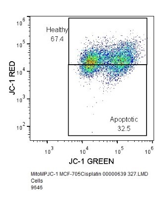 Salvioli S, Ardizzoni A, Franceschi C, Cossarizza A. JC-1, but not DiOC6 or rhodamine 123, is a reliable fluorescent probe to assess Δψ changes in intact cells: implications for studies on mitochondrial functionality during apoptosis. FEBS Lett 1997;411:77-82.