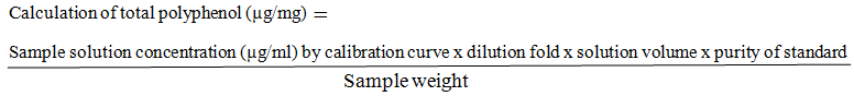 The total phenolic contents were calculated using the following linear equation based on the calibration curve of tannic acid