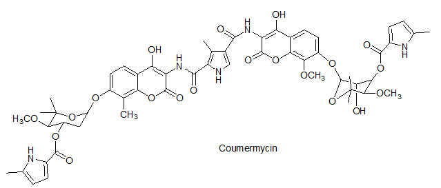 Novobiocin, Coumermycin and clorobiocin are potent antibiotics.