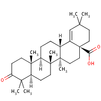 Moronic acid is a pentacyclic triterpenoid made up of olean-18-ene with an oxo group at position 3 and a carboxy group at position 28. It's made from an oleanane hydride. A few investigations have demonstrated that Moronic acid a wide scope of pharmacological effects such as Antidiabetic activity, Anti-AIDS agents, Chemotherapeutic agents, Virus lytic, Anti-HIV, Cytotoxic activity, Anti-herpes, Antimicrobial activity, Ribosome-loaded mRNAs.