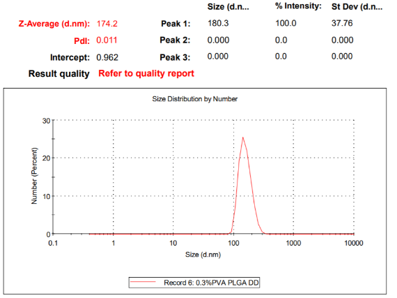 Nanoparticles exhibited narrow size distribution with polydispersity index (PDI) of 0.011 when prepared by single emulsification technique (fig. 3).