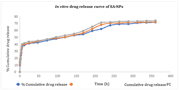 Graph 1: Release profile of EA from PLGA nanoparticles in pH 7.4 phosphate buffer at 37 °C (n=3)