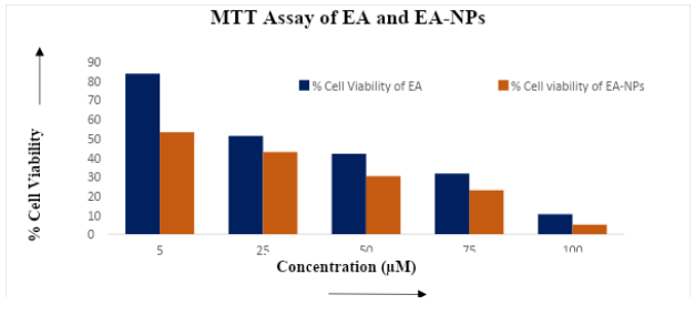 Graph 2: MTT assay of EA and EA-NPs on MCF-7 cells at different concentrations for 48 h