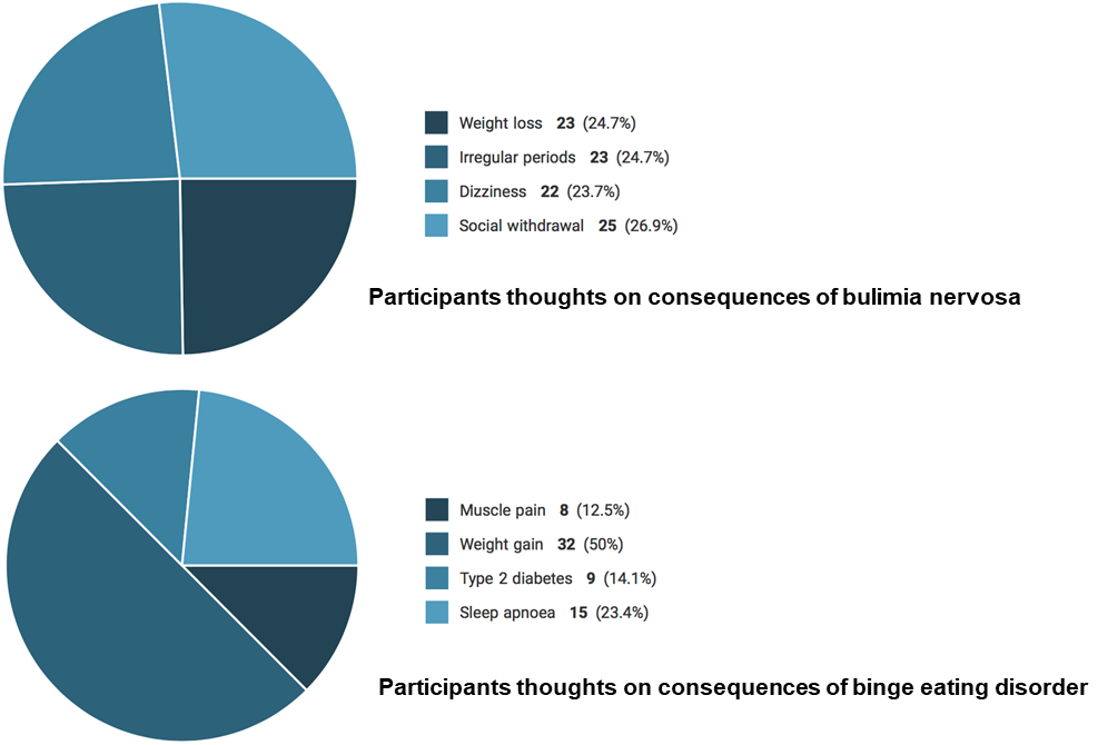 Questions 18 and 19 were intended to determine whether participants were aware about the long-term and short-term implications of bulimia nervosa and binge eating disorders (fig. 6).