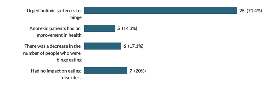 The next question asked pharmacy students what the impact of the COVID-19 pandemic had been on those suffering from an eating disorder. Most participants (71.4%) stated that the pandemic had caused bulimic individuals to binge (fig. 7).