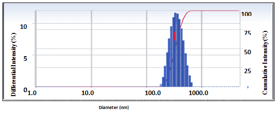 Fig. 8: Particle size distribution curve of curcumin-loaded emulgel