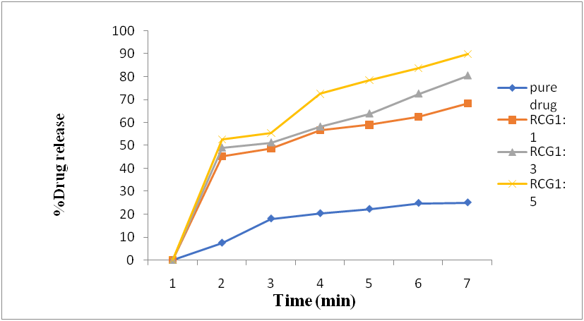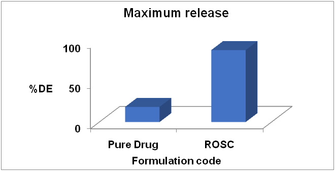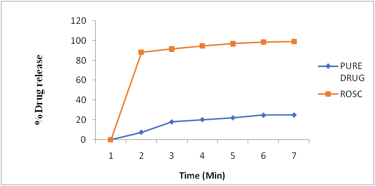 Fig. 6: In vitro dissolution profile of %drug released vs time of pure drug and Capsule dosage forms ROSC