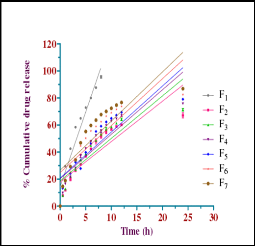 Fig. 7: Comparative in vitro release profile of moronic acid TDDS according to zero-order kinetics