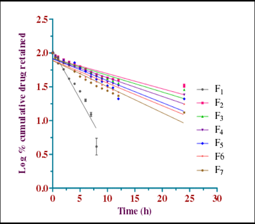 Fig. 8: Comparative in vitro release profile of moronic acid TDDS according to first-order kinetics
