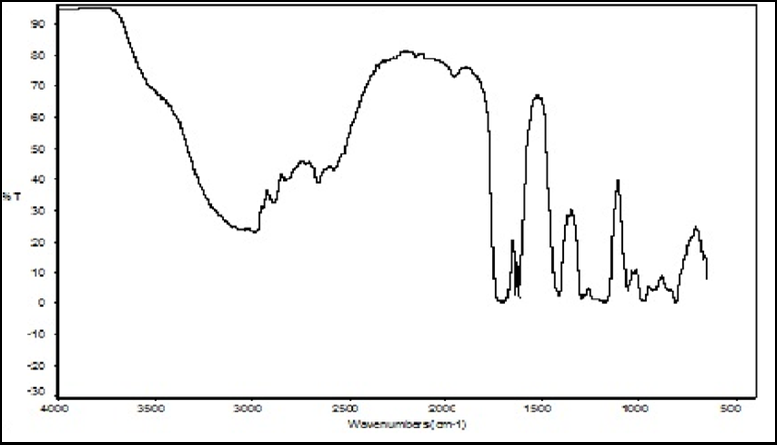 Melting point of the drug was determined by taking a small amount of drug in a capillary tube closed at one end. The capillary tube was placed in a melting point apparatus and the temperature at which drug melts was recorded. This was performed thrice and an average value was noted [8].