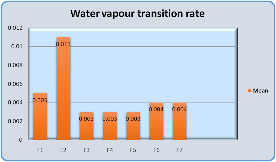 Glass vials of 5 ml capacity were washed thoroughly and dried to a constant weight in an oven. About 1 gm of fused calcium chloride was taken in the vials and the polymer films of 1.44 cm2 were fixed over the brim with the help of an adhesive tape. Then the vials were weighed and stored in a humidity chamber of 80-90 % RH condition for a period of 24 h. The vials were removed and weighed at the time interval of 24 h for three consecutive days to note down the weight gain.
