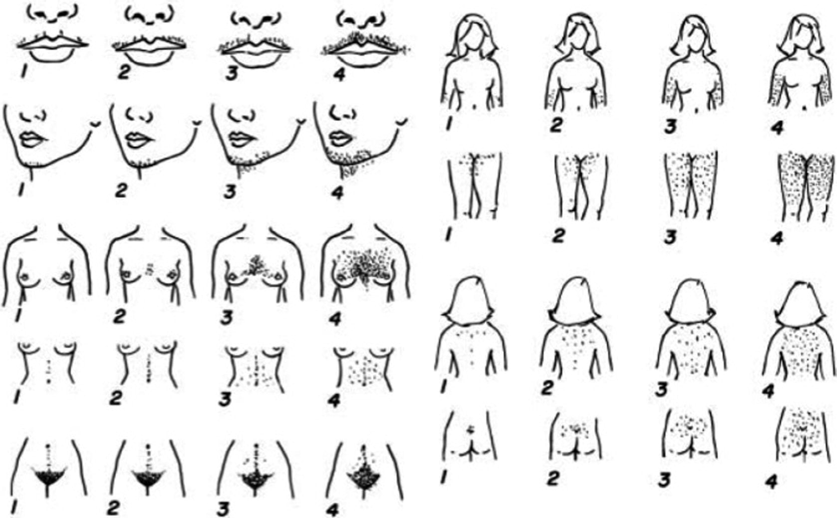 Ferriman D, Gallwey JD. Clinical assessment of body hair growth in women. J Clin Endocrinol Metab. 1961;21:1440-7. doi: 10.1210/jcem-21-11-1440, PMID 13892577.