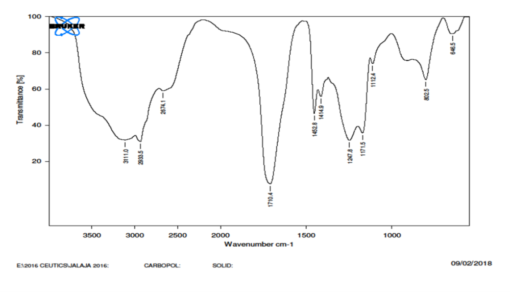 The interaction study of optimized formulation was evaluated by using an IR spectrophotometer; the characteristics peaks and the functional groups can be determined by the specific sharp edges of some of the IR spectrum described below.