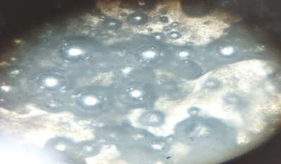 A light microscope (Edison Optics) is used to observe the cubosome gels at a magnification lens of 450X.