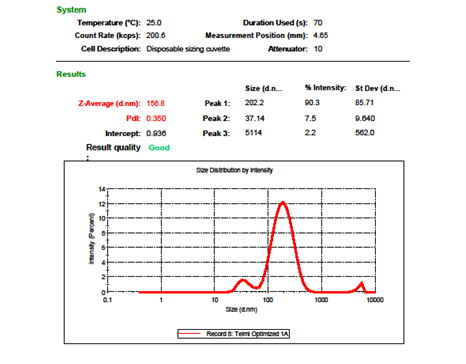 The particle size and potential of the samples can be determined by using a zeta sizer (Nano SZ90, Malvern) is used; the samples are diluted in such a way that they must be clear in form and it can examine to know the size the potential.