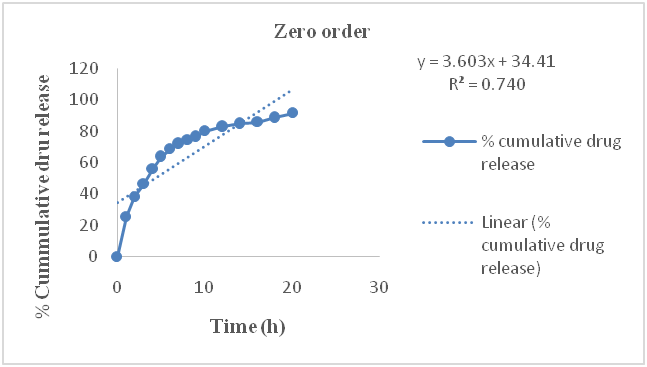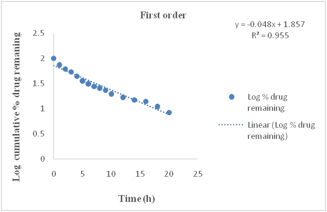 Based on the above results, the cubosomes dispersion floating gel follows First order release kinetics.