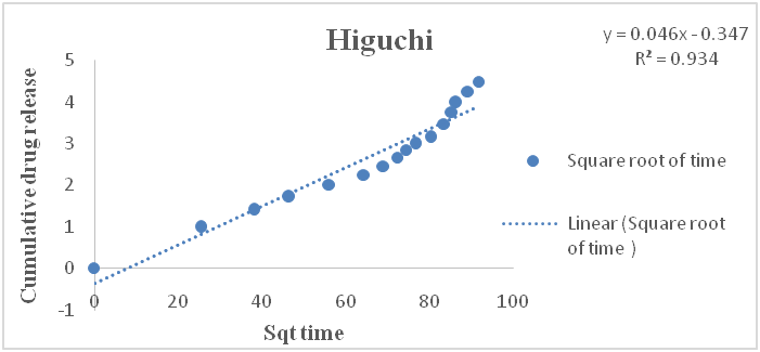 The drug release studies were performed for the various formulations; among those, the best one is selected based on cumulative drug release and carried out for the other evaluations. The formulations of various drug release profiles and cumulative release estimates from selected gel formulations are given below.
