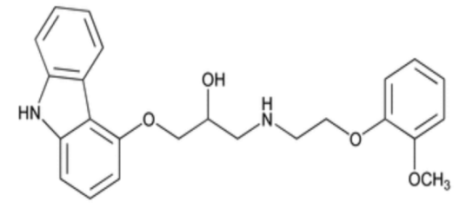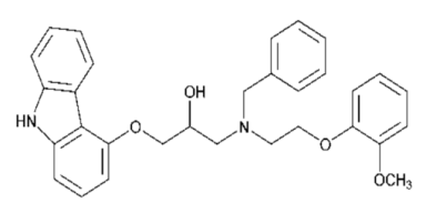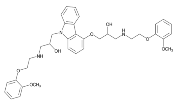 Varin F, Cubeddu LX, Powell JR. Liquid chromatographic assay and disposition of carvedilol in healthy volunteers. J Pharm Sci. 1986;75(12):1195-7. doi: 10.1002/jps.2600751218, PMID 3559930.