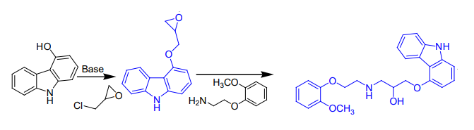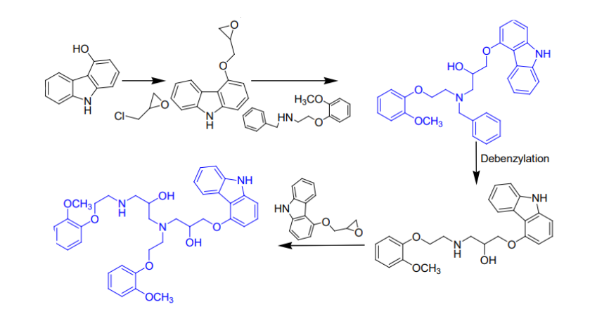 Carvedilol molecule can be synthesized in many routes one of them is mentioned below [30].