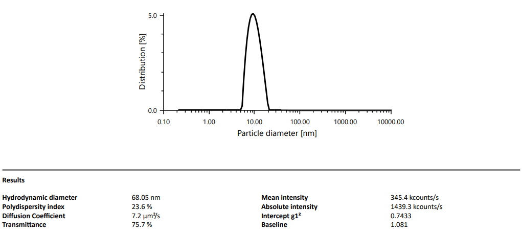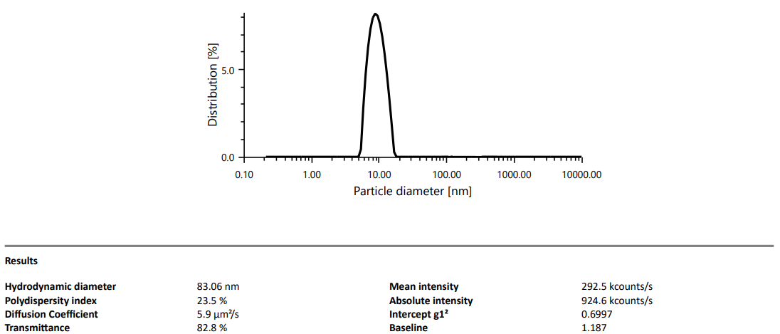 The particle size of the selected formulation was determined by using particle size analyzer (Litesizer 500, Anton Paar, Gurugram, India). The measurements were performed at 25 ℃ at a fixed angle of 90°. Aliquots of the formulation, serially diluted with purified water, were employed to assess the particle size using a particle size analyzer [18].