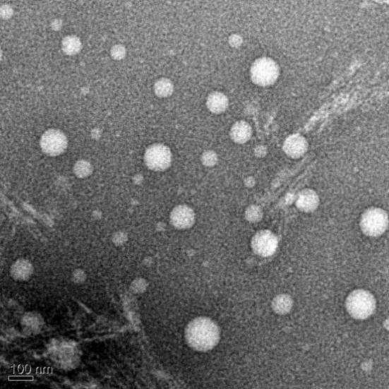 Transmission electron microscopy (H-600, Hitachi, Japan) was employed to study the morphology of the resulting nanoemulsion. Prior to the analysis, the SNEDDS samples were diluted 1000 times with water to form an emulsion, stained with 2% (w/v) phosphotungstic acid for 30 s and placed on 400-mesh copper grids with films for observation [19].