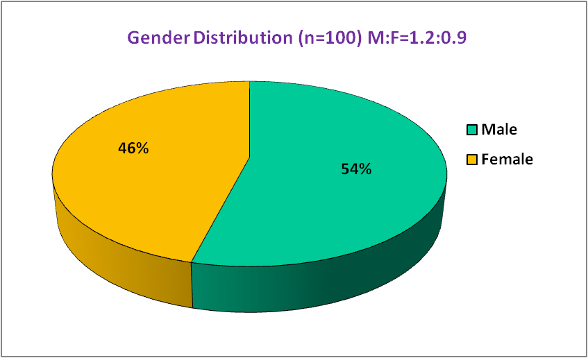A total of 100 patients were recruited in the study who met the eligibility criteria from both Outpatient and Inpatient Departments.