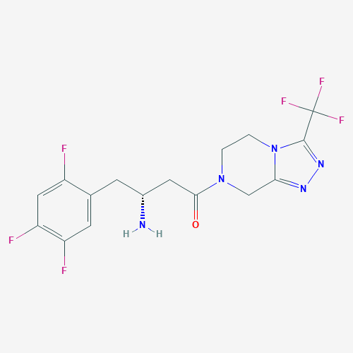 Sitagliptin is chemically (R)-4-oxo-4-[3-(trifluoromethyl)-5,6-dihydro [1,2,4] triazolo [4,3-a]pyrazin-7(8H)-yl]-1-(2,4,5-trifluorophenyl) butan-2-amine [1]. It is an oral dipeptidyl peptidase-4 (DPP-4) inhibitor used in conjunction with diet and exercise to improve glycemic control in patients with type 2 diabetes mellitus. Sitagliptin inhibits DPP-4 which leads to increased levels of glucagon-like peptide-1 (GLP-1) and glucose-dependent insulinotropic polypeptide (GIP), decreased levels of glucagon, and a stronger insulin response to glucose. This enzyme splits the incretins GLP-1 and GIP, gastrointestinal hormones released in response to a meal [2].