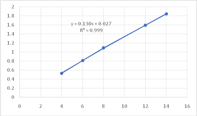 | 2. | Linearity and range (μg/ml) | 4-14μg/ml |