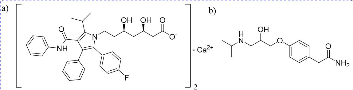 Fig. 1: Chemical scaffolds of a) ATV and b) ATL