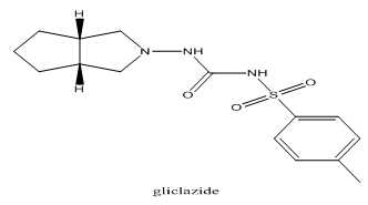 It was first patented in 1996 and received FDA approval for medical use in 1972. It is marketed under the brand name Diamicron and is used to treat type 2 diabetes when dietary changes, exercise, and weight loss are insufficient; it primarily operates by boosting insulin release [5]. Gliclazide, 1-(4 methylbenzenesulphonyl) 3-(3 azabicylco [3.3.0] octyl) urea (I), is a type II diabetes medication that belongs to the second generation of sulphonylureas. It is used to treat non-insulin-dependent diabetic mellitus (NIDDM). Gliclazide may be suitable for use in diabetic patients with renal impairment, as well as in older people whose diminished renal function may increase the risk of hypoglycaemia while taking some sulphonylureas, due to its short-acting nature [6].