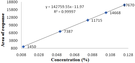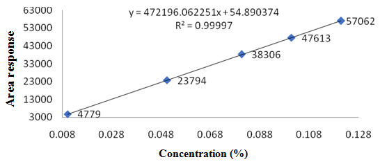 | Concentration (% w/w) | Area of injection-1 | Area of injection-2 | Average area |