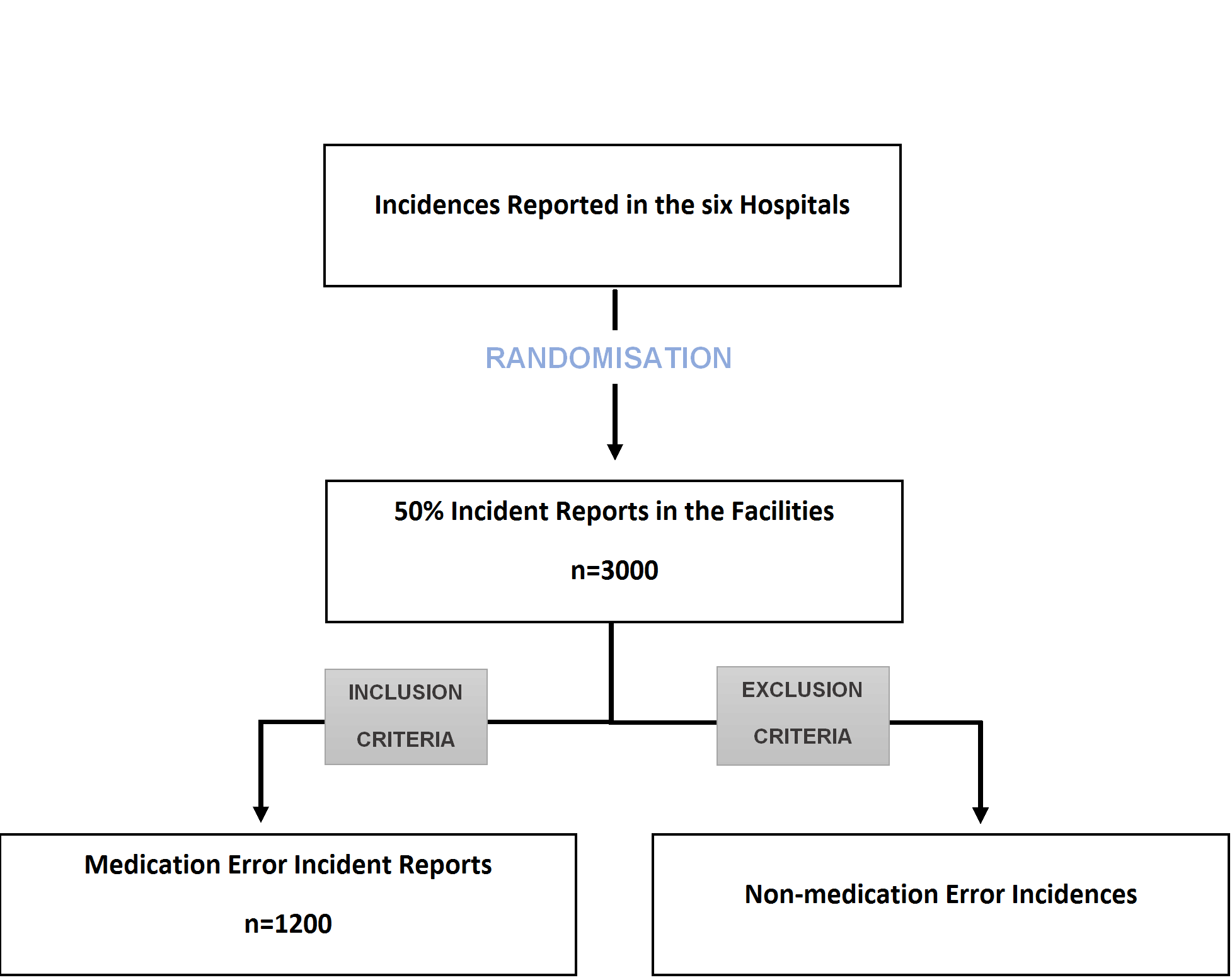 The sample selected were related to medication errors from prescribing records, administration records, dispensing records, patient notes, admission notes, discharge notes, outpatient notes, emergency department (ED) notes, surgical notes, and intensive care unit (ICU) notes. Records that were not related to medication management e. g., surgical procedures notes, and dressings notes, or nutrition management were excluded.