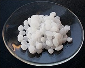 | Sodium hydroxide | IUPAC name: Sodium hydroxide Other names: lye, caustic soda Molecular formula: 39.997 g/mol Chemical formula: NaOH Appearance: white, waxy, opaque crystals Boiling Point: 1388 °C Odor: odorless Melting point: 318 °C Solubility: Soluble in water, glycerol, negligible in ammonia and insoluble in ether. Uses: Use as lye in soap formlation. NaOH when combined with fats/oils produces saponification reaction. |