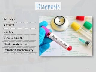 Nipah viral disease is a zoonotic infection caused by Nipah virus (NiV), a paramyxovirus belonging to the genus Henipavirus of the family Paramyxoviridae. First emerged in Malaysia in 1998 and has sinces caused outbreaks in other parts of south and south east Asia. It is an emerging bat-borne pathogen. It causes severe neurological and respiratory disease which is highly lethal. Nipah virus is associated with ingestion of contaminated date palm sap and human-to-human transmission. Bats are the main reservoir for this virus, which can cause disease in humans and animals. Rapid diagnosis and implementation of infection control measures are essential to contain outbreaks. Different types of enzyme-linked immunosorbent assays along with molecular methods based on polymerase chain reaction (PCR) have been developed for diagnostic purposes. A number of serological and molecular diagnostic techniques have been developed for diagnosis and management arise when a new area is affected. However, no effective treatment or prophylaxis is readily available, though several approaches show promise.
