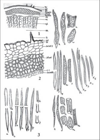 The midrib is having concavo to convex outline and possess more dorsal convexity as compared to the ventral concavity. It displays a sole layer of epidermis cells which are cubicle to tangentially in shape. The cells of the upper epidermis are bigger than then the lower epidermis. The epidermis is enclosed superficially by a thick cuticle which appeared to be profoundly furrowed on both sides. The cuticular furrows found in the upper side are bigger than those of the lower side. Beneath the epidermis cell there is a widespread cortex. This cortex is formed by three to five layers. on the ventral side there is usually thick-walled parenchyma cells are present. However, on the dorsal side there is five to eight layers of thick-walled parenchyma cells. The Parenchyma cells are polyhedral to circular in shape with having slight inter-cellular spaces in between them. Neighbouring the vascular tissue there is all arounda discontinuous strand of four to six layers of pericyclic fibers with thick lignified walls consisting of a small lumen in between them. The fibers are extended and pointed with blunt ends. The vascular structure demonstrates an intermittent ectophloic-siphonostele encircling in the center central small pith that is consist of thin-walled polyhedral to is diametric parenchymatous cells. The medullary rays consist of one to two cells that are wide traverse through the xylem and phloem provinces. The phloem is comprising of sieve tubes, sieve plates and parenchyma but there is lackness of Phloem fibers. The xylem is consisting of trachae, tracheids, tracheidal fibers, xylem fibers and xylem parenchyma and these all are lignified. The trachea is extended with spiral, annular, scalar form and bordered pits. The later have distinct perforation rims. The tracheids are of 2 types.