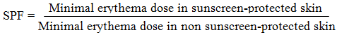 The Efficiency of sunscreen potential has been evaluated through Sun Protection Factor (SPF); the efficacy of a sunscreen is usually expressed by the sun protection factor (SPF), which is defined as the UV energy required for producing a minimal erythemal dose (MED) in protected skin, divided by the UV energy required to produce an MED in unprotected skin