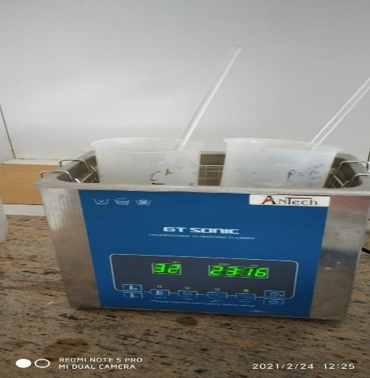 Fig. 1: Formulation placed on ultra-sonication to remove air bubble